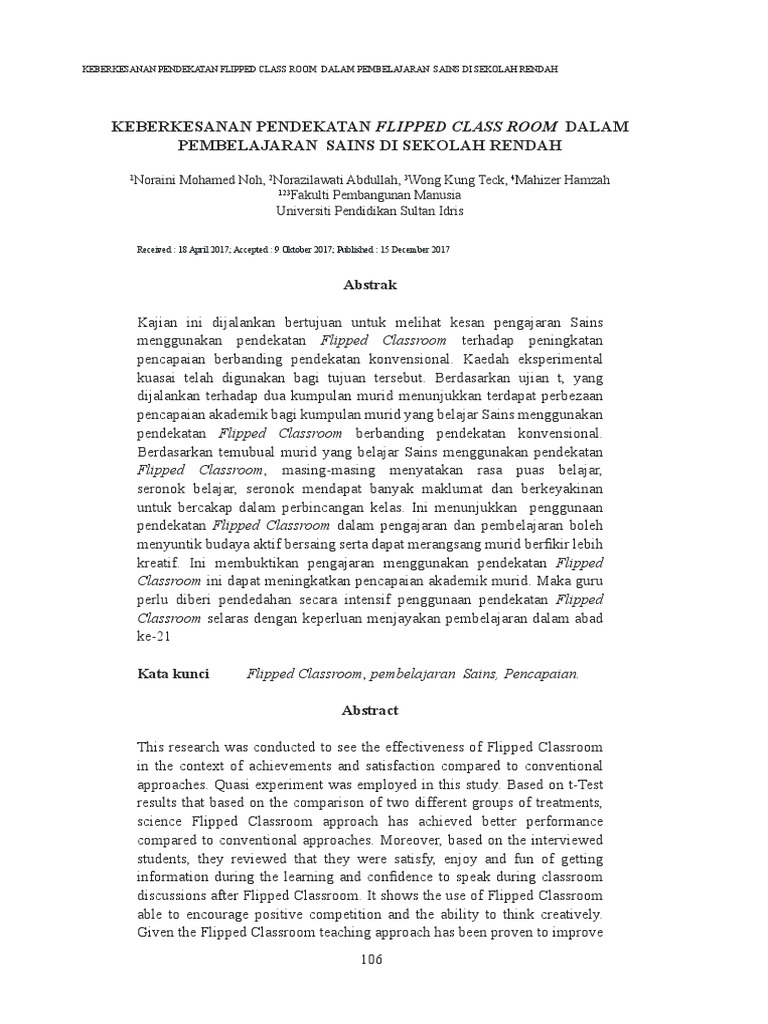 Pdf Keberkesanan Pendekatan Flipped Class Room Dalam Pembelajaran Sains Di Sekolah Rendah Hasmadi Amat Academia Edu